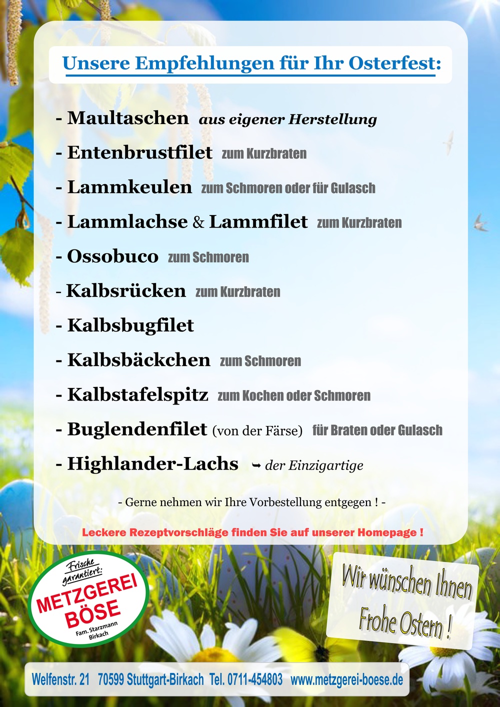Ihr Fleischer-Fachgeschäft in Stuttgart-Birkach